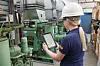 CMMS: Eine Technikerin nutzt ein Tablet zur digital gesteuerten Wartung von Maschinen, um Ausfälle zu reduzieren.Fluke