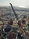 Die SK-Serie von Mammoet zählt zu den leistungsstärksten landgestützten Kranlösungen weltweit. Aufgrund der hohen Tragfähigkeit und großen Ausladung konnte der Kran außerhalb stark frequentierter Baustellenbereiche positioniert werden und dennoch Lasten über mehr als 150 Meter Radius sicher heben.