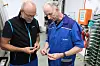 Bild 2: Berthold Weisser, Manufacturing Engineering bei IMS Gear (li.), und Matthias Boss, technische Beratung und Vertrieb bei Iscar, besprechen den Einsatz des Stechwerkzeugs.Iscar